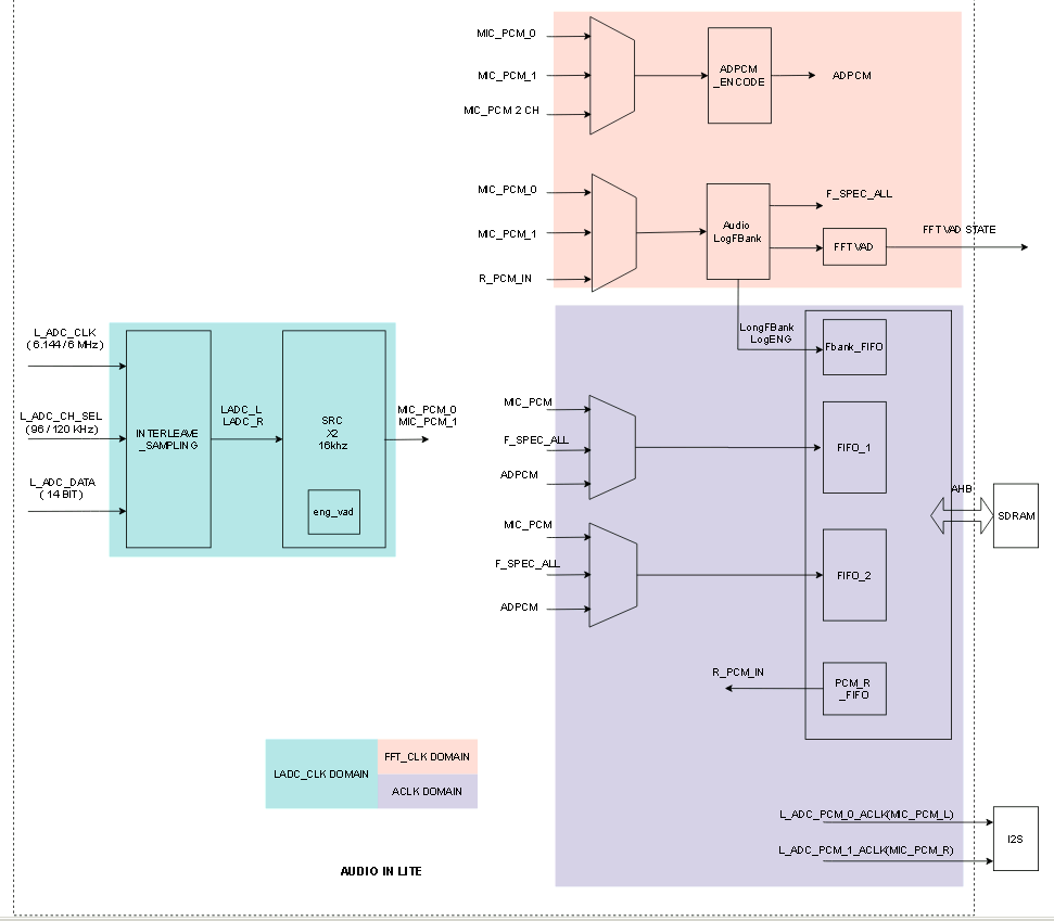 音频采集模块, 采集麦克风数据存储至内存。其内包含LogFBank运算单元。