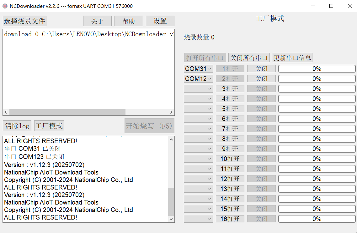 NCDownloader 是国芯通用的 PC 烧录工具,可以在win7,win8,win10操作系统上使用。